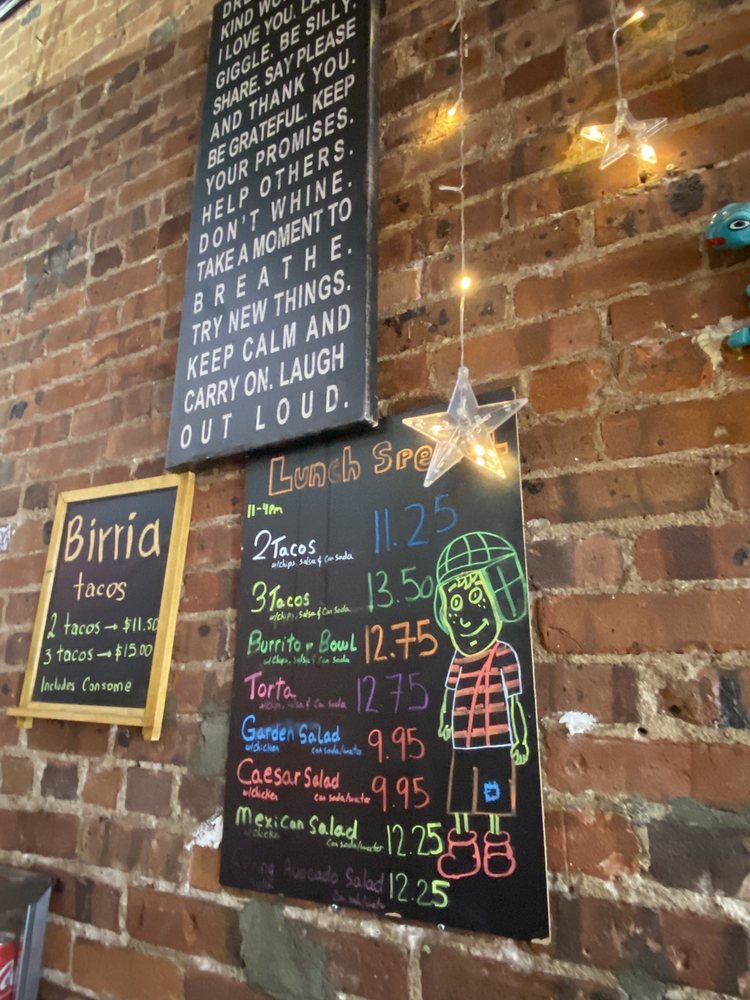 Ground beef, lettuce, onion, cilantro, green avocado sauce.