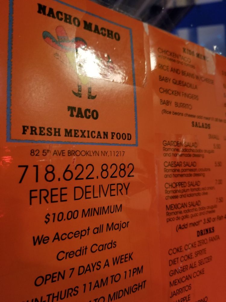 Introducing Nacho Macho Taco, a Mexican restaurant located at 82 5th Ave in Brooklyn, NY. This eatery offers a variety of Mexican dishes with many vegetarian options, perfect for lunch or dinner. The restaurant provides delivery, takeout, and reservations, making it convenient for all diners. With wheelchair accessibility, outdoor seating, and waiter service, Nacho Macho Taco ensures a comfortable dining experience. Customers rave about the flavorful tacos, especially the birria, and praise the excellent customer service. While the storefront may be small, the food quality and value for money are unbeatable. Don't miss out on the opportunity to indulge in the delicious offerings at Nacho Macho Taco, where every bite is a fiesta for your taste buds.